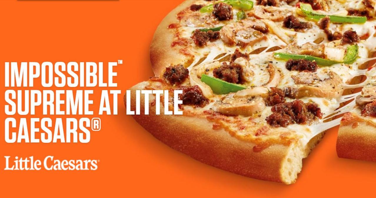 Este lunes Little Caesars se arriesgó a lanzar su pizza Impossible Supreme, “la pizza está repleta de todos tus aderezos supremos favoritos: cebolla caramelizada, pimientos verdes, champiñones y la nueva salchicha Impossible ™ hecha de plantas. Solo en las ubicaciones de Little Caesars® participantes. Hambriento ya?”, indica la empresa que se asoció con Impossible Foods para tener de manera exclusiva esta salchicha vegetariana.