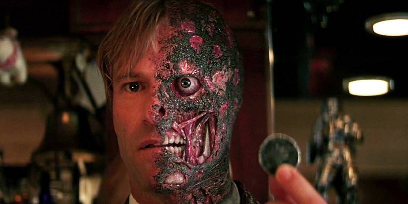 El caballero oscuro es una película cargada de actuaciones brillantes, todas ellas particularmente eclipsadas por el legendario Joker de Heath Ledger. Por muy bueno que fuera el villano que definió la carrera de Ledger, tiende a saturar la conversación del elenco de estrellas de la película, eclipsando a otros personajes bien realizados. Perdido en la confusión está Harvey Dent de Aaron Eckhart, quien eventualmente se convierte en Two-Face en el transcurso de la acción.