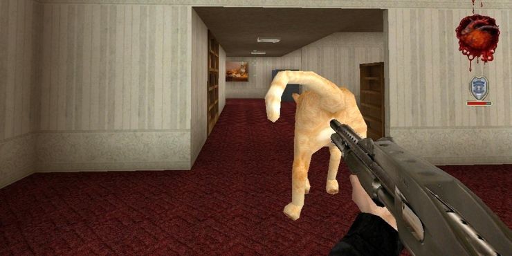 postal 2 es un FPS controvertido que no rehuye burlarse de sus jugadores, pero también bromea sobre animales inocentes. The Postal Dude puede elegir equipar gatos como silenciadores conectándolos a su escopeta o ametralladora, después de lo cual la munición saldrá de la boca de los gatos.