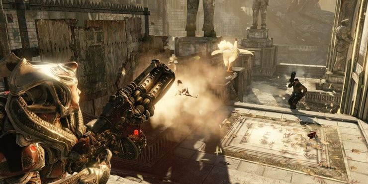Es gratamente sorprendente encontrar una de las armas más extrañas en un juego serio como Engranajes de guerra 3. Los jugadores pueden optar por volar a través del Lambent usando el Cluckshot, un gran lanzagranadas que dispara pollos.