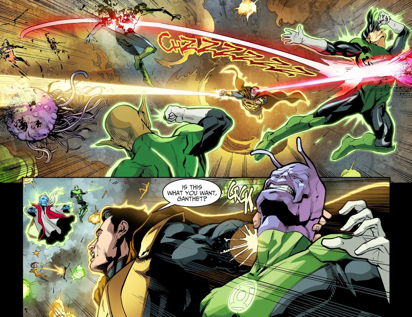 “/> Una de las guerras más grandes en la historia de DC tiene lugar en el universo alternativo de Injusticia. Cuando Superman se apodera de la Tierra, los Linternas Verdes intervienen para detenerlo. Esto conduce a una guerra a gran escala entre el régimen de Superman y el Green Lantern Corps, como se ve en Injusticia: Dioses entre nosotros – Año dos por Tom Taylor, Mike S. Miller, Rex Lokus y Wes Abbott. Los Linternas Verdes obviamente no pueden quedarse quietos mientras un extraterrestre se apodera de un planeta bajo su jurisdicción, y Superman no se someterá a nadie más y renunciará a su régimen después de todo lo que ha hecho. Debido a este conflicto, Superman termina con un anillo de linterna amarilla y masacra a todo el Green Lantern Corps, incluso empuja a Ganthet y Mogo hacia el sol, matándolos a ambos.
