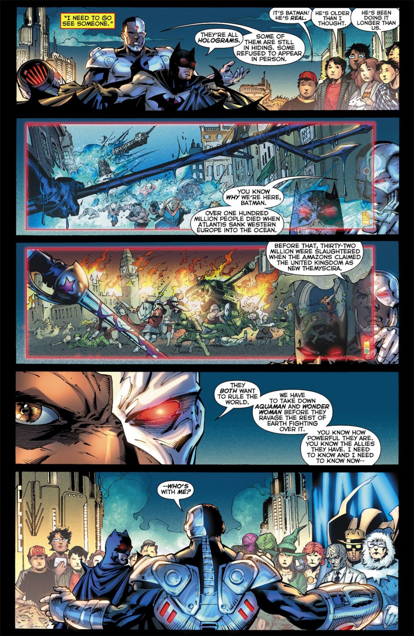 “/> Cuando Barry Allen decide evitar el asesinato de su madre, termina retrocediendo en el tiempo para cambiar su muerte. Hacer esto envía reverberaciones a lo largo de la línea de tiempo y cambia casi todo. Uno de los cambios más importantes es que Wonder Woman y Aquaman tienen una aventura. Cuando Mera, la esposa de Aquaman, se entera, intenta matar a Wonder Woman, quien luego mata a Mera en defensa propia. Con el corazón roto por la muerte de su esposa, Aquaman declara la guerra a las Amazonas. Esta guerra se libra en toda la Tierra y causa la muerte de millones. Es una de las guerras más sangrientas en las que ha estado involucrada la Liga de la Justicia porque incluye intencionalmente la muerte de civiles en ciertos puntos. Esta guerra fue mencionada por primera vez en Punto de inflamabilidad #1 de Geoff Johns, Andy Kubert, Sandra Hope, Alex Sinclair y Nick J. Napolitano.