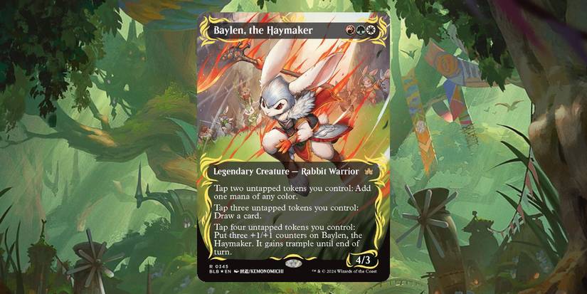 Baylen, el Hacedor de Heno es una carta de Guerrero Conejo que tiene los colores de Naya y es un indicador de su mecánica, que es la generación de fichas. Porque es una de las inclusiones más promocionadas en la temática de fichas en Madriguera de floresTambién es uno de los más fuertes, ya que ofrece una gran cantidad de efectos que aumentan con la cantidad de fichas disponibles. También es bastante fuerte por sí solo como 4/3 por 3 manás. Reproductor TCGPActualmente muestra este peso pesado a $103.32 en este momento.