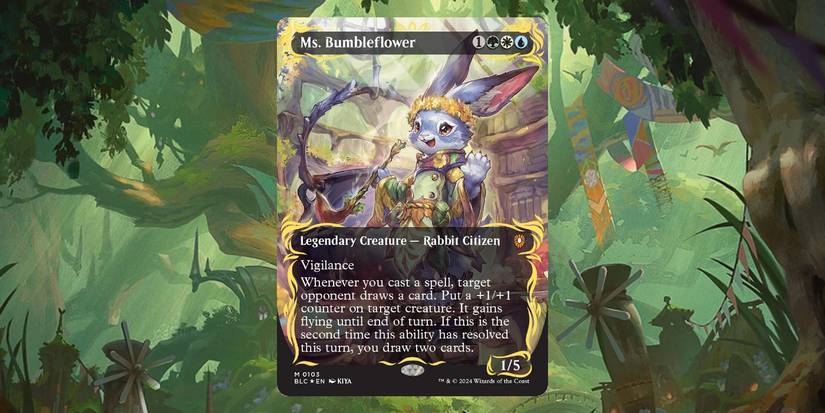 Ms. Bumbleflower es una carta de Commander que forma parte de un arquetipo muy querido en la comunidad: el abrazo grupal. Básicamente, Ms. Bumbleflower es una carta que permite la política al extremo, ofreciendo bonificaciones a cualquier jugador en la mesa de Commander que esté dispuesto a hacer un trato con su controlador. El arte, además de ser un lindo conejito, tampoco afecta su coleccionismo. Reproductor TCGP Actualmente, la Sra. Bumbleflower tiene un precio de mercado de $158,75..