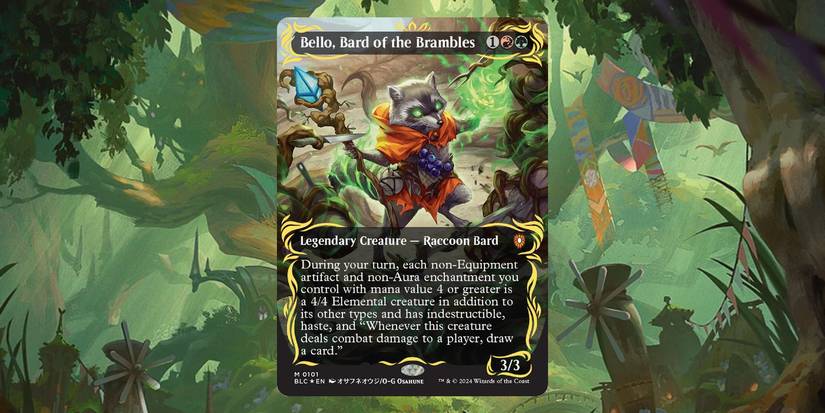 Bello, el bardo de las zarzas es el mapache más interesante de Madriguera de floresY como opción de comandante legendario, eso ya lo hace extremadamente popular. Juega bien con el tema de los mapaches, lo que hace que valga la pena usar basura, pero su habilidad para convertir artefactos y encantamientos en motores indestructibles para robar cartas es bastante increíble. Esta versión artística también es la más linda, por eso Reproductor TCGP Actualmente muestra a Bello, Bard of the Brambles a un precio de mercado de $177.61.
