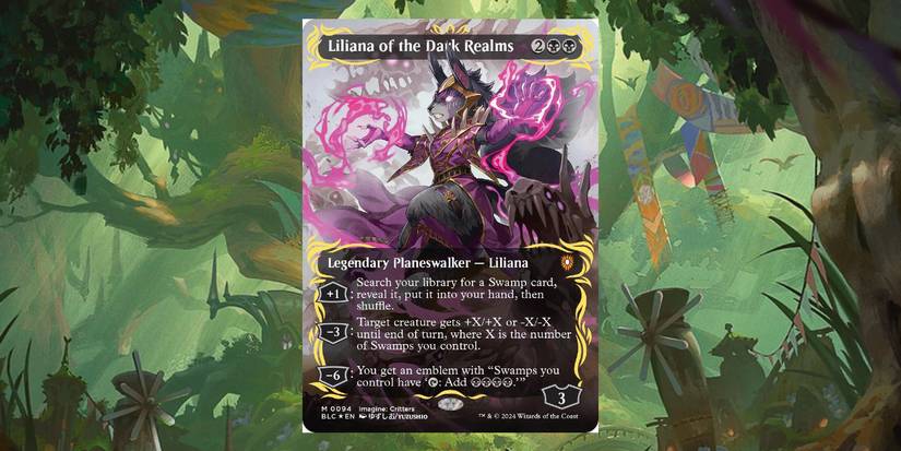 Liliana of the Dark Realms es el primero de dos tratamientos Borderless Raised Foil Imagine: Critters que conforman el más caro Madriguera de floresMTG cartas. Liliana es una planeswalker icónica y la reimaginamos como una ardilla, el tipo de criatura que tiene más sentido para ella dadas sus inclinaciones nigrománticas. Madriguera de florescrea una pieza única que todo coleccionista debe tener. Liliana of the Dark Realms no es exactamente una figura destacada en ningún formato, pero eso no ha impedido que su Reproductor TCGP Listado que muestra un precio de mercado de $259,27 al momento de escribir este artículo..