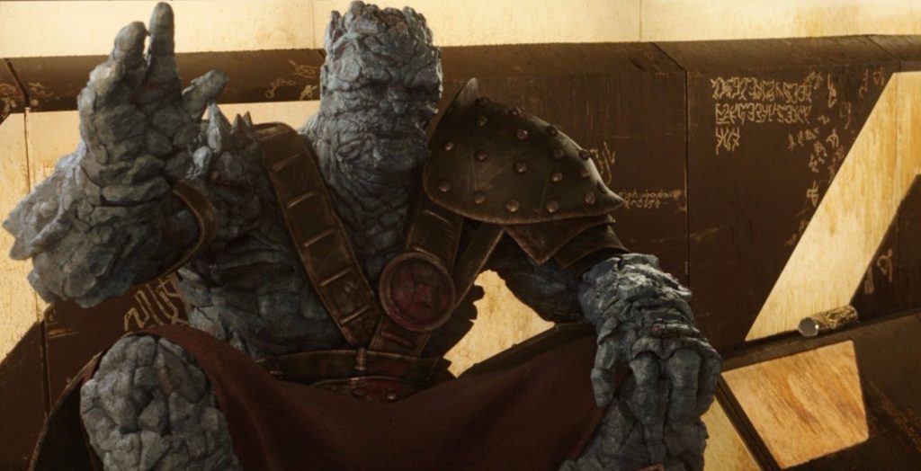 Korg se presentó en Thor: Ragnarok con un pequeño gran monólogo que nos lleva a una broma sobre el hecho de que es una forma de vida basada en la roca: "Estoy hecho de rocas, como puedes ver, pero no dejes que eso te intimide". No debes tener miedo, ¡a menos que estés hecho de tijeras! Solo una pequeña piedra, papel, tijeras, una broma para ti.