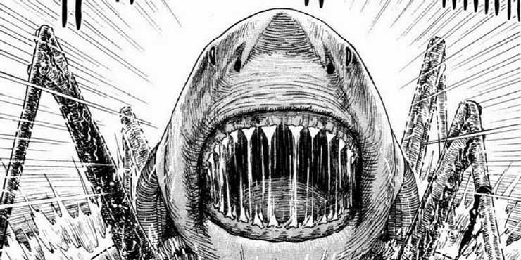 Teniendo en cuenta cómo la galeofobia, el miedo a los tiburones, es uno de los miedos más omnipresentes en la historia de la humanidad, la creación de Ito de The Walking Shark en Gyo es materia de pesadillas legítimas. Tal como suena, el asesino Gran Tiburón Blanco puede caminar sobre cuatro patas y acechar a víctimas humanas en tierra y mar.
