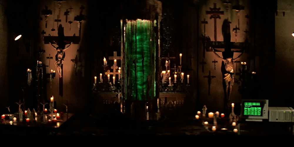 Este enfriador de 1987 se hizo como un repaso de bajo presupuesto para Carpenter, que se había quemado trabajando con los principales estudios. Carpenter regresó a sus raíces de la película B con Príncipe de las tinieblasdonde un grupo de científicos investiga una tina giratoria de líquido verde debajo de una iglesia. Dentro de este vat se encuentra la esencia del propio Satanás, que está empezando a despertar.