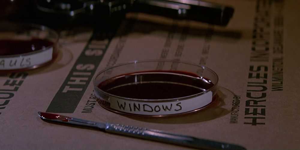 La cosa es una nueva versión de 1951 La cosa de otro mundouno de los favoritos personales de Carpenter. Era reacio a reiniciarlo, pero la oportunidad de hacer la escena del análisis de sangre era lo que lo convenció. Esto involucra a Macready de Kurt Russell vinculando a los sobrevivientes restantes y probar su sangre con una aguja caliente para ver quién es humano.