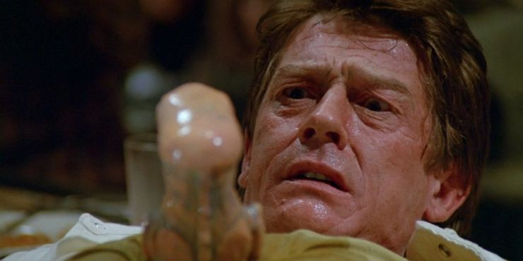 Otro bebé xenomorfo se abre camino hacia fuera de su pecho mientras suspira, “¡Oh, no, no otra vez!” Luego, en un homenaje histérico a la clásica caricatura de Chuck Jones, el extraterrestre se pone un canotier de paja, toma un bastón y comienza a cantar “¡Hola! Ma Baby “.