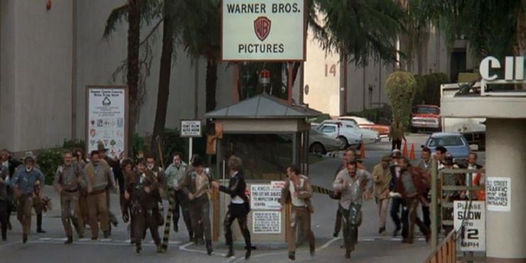 La batalla final se extiende al lote del estudio contiguo, culminando en una pelea de comida con un montón de otros actores de películas en la cafetería. Esta secuencia anárquica arrasa alegremente la cuarta pared.
