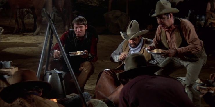 Sobre el papel, un grupo de vaqueros sentados alrededor de una fogata tirándose pedos suena como una broma innecesariamente grosera que busca risas baratas. Pero Brooks lo hace funcionar porque es una sátira acertada de los westerns.