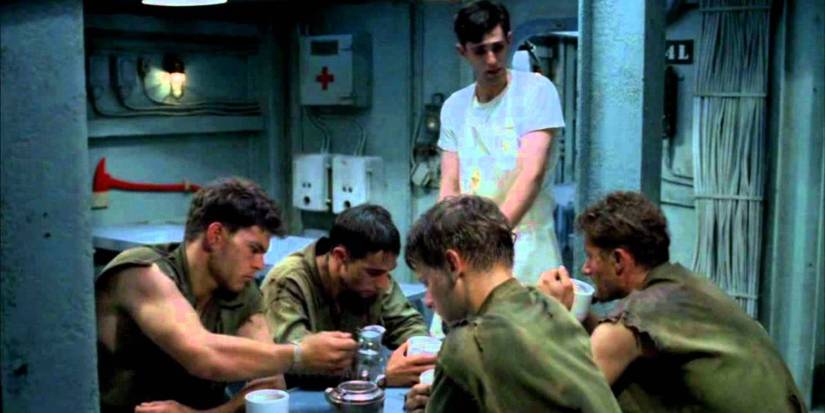 El soldado primero trata de ser valiente, exigiendo que los estadounidenses lo maten, pero rápidamente desglosa sollozando, ya que sabe que nunca vivirá, pero que los estadounidenses tampoco lo dejan morir. Es una escena terriblemente triste y sugiere que los soldados del otro lado son solo hombres, luchando por sus vidas y aterrorizados de todos modos.