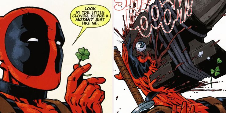 Una lesión que podría haber salido de una clasificación R Looney Tunes, Equipo de Deadpool #885 tiene al mercenario encontrándose con alguien en un callejón oscuro. Lo que hace que esto sea aún más sospechoso es que esta persona lo contactó en línea. Sin embargo, el yunque no cae sobre él instantáneamente. Al estilo típico de Deadpool, se distrae con la cosa más simple: un trébol de cuatro hojas, mientras que tampoco comprende el significado detrás de una X gigante pintada en la acera.