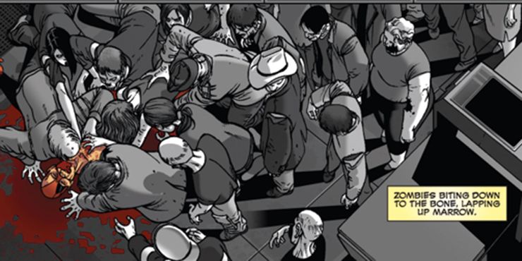 Esta es una situación de la que ni siquiera Deadpool podría salir. En La noche del Deadpool viviente, se despierta del coma para descubrir que el mundo ha sido invadido por zombis y que él es la única persona viva que existe. Intenta sobrevivir por un tiempo, pero finalmente sucumbe a la abrumadora horda.