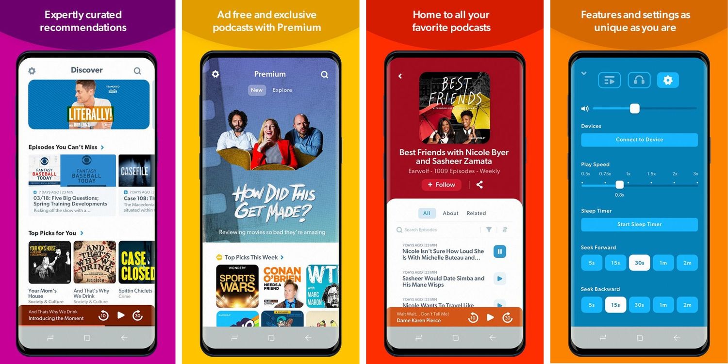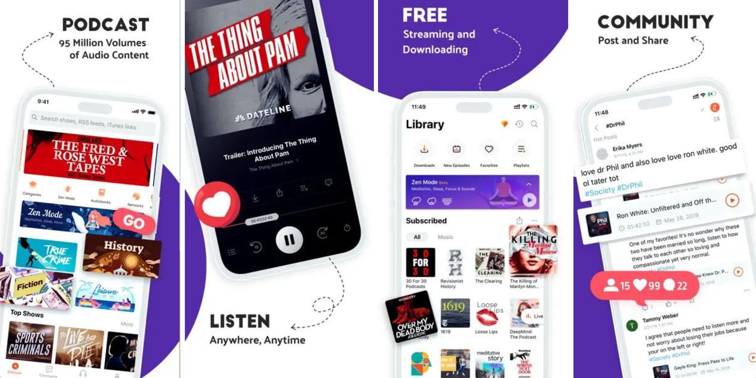 Una sección Descubrir permite a los usuarios navegar por la biblioteca y elegir los títulos que les gustan, y es muy probable que encuentren algunos de los programas de audio más populares en la plataforma. La versión gratuita de Castbox contiene muchas funciones, que incluyen aumento de volumen, ajuste de silencio, velocidad de reproducción, compatibilidad con Android Auto y Apple CarPlay. Los usuarios también pueden descargar y guardar podcasts para escucharlos sin conexión. Además, pueden dejar comentarios sobre los episodios y compartir sus comentarios con el creador. La versión gratuita puede mostrar demasiados anuncios para el gusto de algunas personas, en cuyo caso los usuarios pueden obtener la versión premium por $0,99 al mes.
