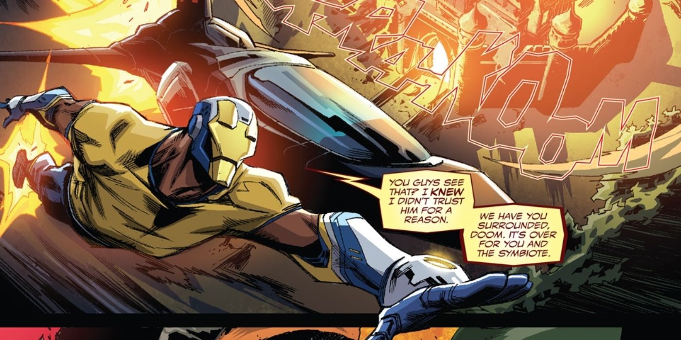 Si bien Luke Cage es probablemente la última persona que necesitaría la protección de una armadura dado su conjunto de poderes, no dijo “no” a las mejoras ofensivas que vinieron con su propio traje de Iron Man. De hecho, el estilo del traje en sí refleja eso, ya que es mínimo con solo las ubicaciones necesarias de armadura en el cuerpo de Cage que ofrecen mejoras sobrehumanas, como guanteletes para explosiones de energía, botas para volar y un casco para navegar/identificar objetivos. . Este traje apareció en el Venomverse: Historias de guerra Historia número uno “Fuerza mayor” de Aaron Covington y Khary Randolph, donde Luke Cage la usó para enfrentarse al Doctor Doom.