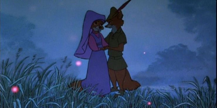 Curiosamente, la relación romántica de Robin Hood con Maid Marian pasa a un segundo plano en la película. Sin embargo, después de derrotar al Príncipe John en un torneo de tiro con arco, Robin y Marian finalmente tienen un tiempo a solas juntos, que toma la forma de un romántico paseo nocturno por el bosque.