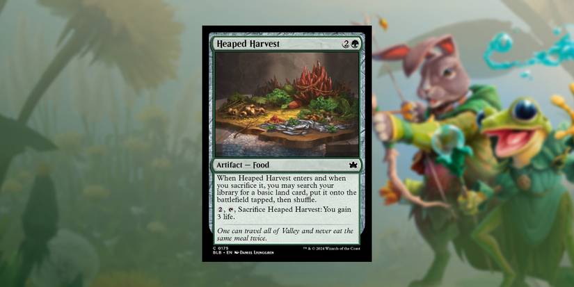 A primera vista, Heaped Harvest no es una carta llamativa. Por tres manás, entra y busca una carta de tierra básica y la pone en el campo de batalla. Cuando se sacrifica, hace lo mismo, y tiene dos manás genéricos y un efecto de giro para sacrificarla y ganar tres vidas. Sin embargo, los jugadores experimentados del modo Estándar probablemente ya se darán cuenta de a dónde va esto: esto es un excelente Tarjeta para estrategias de rampa, que ofrece dos tierras y tres Vida por una inversión total de cinco manás en dos turnos.Su flexibilidad y consistencia probablemente lo convertirán en un elemento básico de estas estrategias en el futuro previsible.