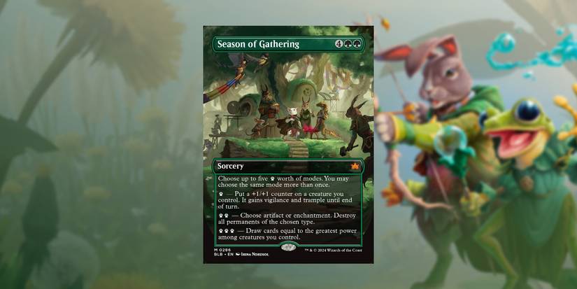 Al observar los hechizos modales, hay dos pruebas que pasar: ¿los efectos son lo suficientemente buenos por sí solos como para justificar su selección? alguno ¿Cuáles son los puntos clave en una partida hipotética y son rentables en relación con el valor total de maná del hechizo? Season of Gathering parece ser el más prometedor de sus Madriguera de flores ciclo, porque sus tres efectos son beneficiosos en una estrategia de rampa verde. Incluso en un caso de uso “malo”, si un jugador tiene de tres a cinco criaturas en juego, puede darles a cada una de ellas arrollar, vigilancia y un contador +1/+1 para hacer pasar el daño.¿Y contra un mazo que usa muchos artefactos y encantamientos? Esta carta realmente brilla, y su existencia podría impedir que esos tipos de arquetipos encuentren su lugar en el próximo formato Estándar.