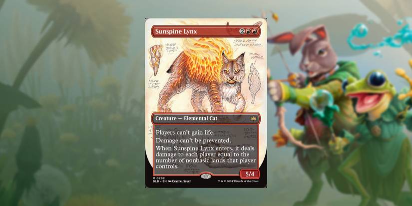 Sunspine Lynx no será demasiado fuerte debido a su habilidad de entrada, aunque incidentalmente podría causar entre dos y ocho daños dependiendo del oponente Estándar. Su prevención de ganancia de vida y la prohibición de prevención de daños es lo que lo hace tan aterrador. – Para algunas estrategias, los efectos de ganancia de vida o de “niebla” les permiten superar turnos aterradores contra mazos rojos agresivos, lo que ya no es una opción cuando Sunspine Lynx está en juego. También existe la posibilidad de que esta carta se juegue en formatos más antiguos, porque incluso con su alto costo, su habilidad similar a Price of Progress y su gran tamaño pueden plantear preguntas incómodas a los mazos de control que no están preparados para responder adecuadamente.