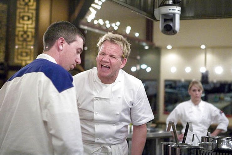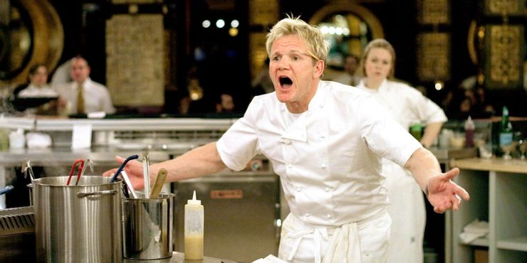 Ramsay aplasta alimentos crudos a menudo en el programa, y generalmente se borra, pero son estos momentos en los que el espectador no espera tal reacción de Ramsay que lo hace dorado.