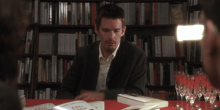 Cuando Jesse escribe un libro que trata más o menos sobre su experiencia al conocer a Celine en el tren a Viena, muchas personas tienen muchas preguntas. La primera es si el libro es autobiográfico o no. Aunque Jesse les da a los entrevistadores una respuesta un poco críptica, comparte una profunda sabiduría en su respuesta.
