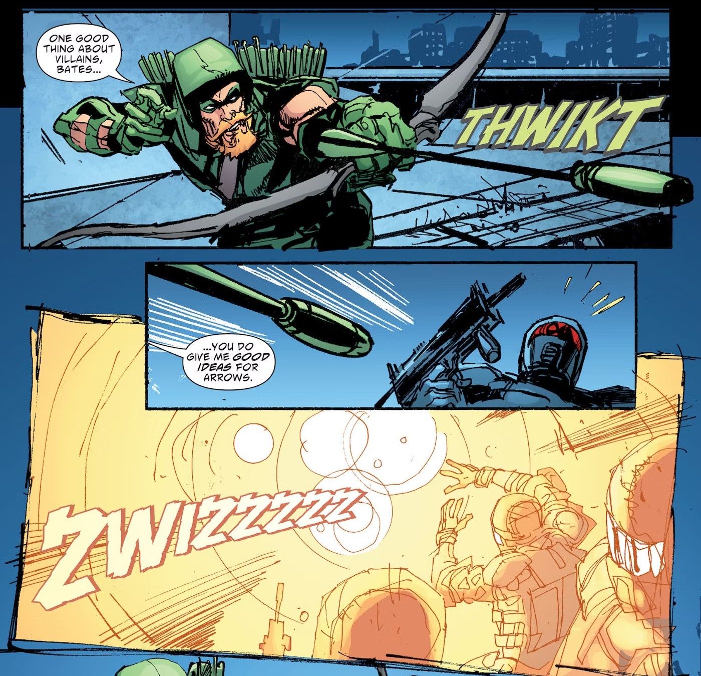 “/> Green Arrow a menudo se verá superado en número, ya sea debido a un motín o simplemente a numerosos criminales en un solo lugar. Cuando esto sucede, la mejor opción es simplemente usar la Flecha de gas durmiente de Green Arrow. Todo lo que tiene que hacer es disparar al suelo o a la multitud y en tres segundos quedarán inconscientes. Uno de los trucos favoritos de Green Arrow es disparar la flecha a alguien que sabe que la atrapará, para que el gas se libere en su cara y lo noquee. Aunque esta flecha debutó en la Edad de Oro, todavía se usa con frecuencia hasta el día de hoy.