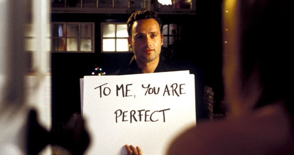 Amor en realidad es un clásico de vacaciones de comedia romántica de 2003. Dentro de él, hay 10 historias diferentes, incluso sobre Mark, Juliet y Peter. Quizás la escena más conocida de esta película muestra a Mark, quien es retratado por Andrew Lincoln, sosteniendo tarjetas de referencia, para decirle a Juliet, quien es retratada por Keira Knightley y casada con Peter, lo que siente por ella.