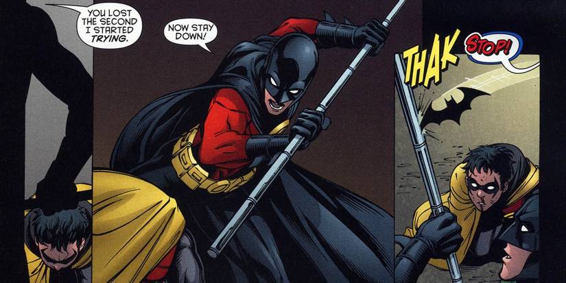 Todo eso se va por la ventana cuando los dos hermanos murciélago se enfrentan por una revancha una vez que Damian se ha convertido oficialmente en Batman y Tim ha ascendido a Red Robin. Deja en claro verbal y físicamente que su primera pelea fue una casualidad y que cuando Tim se esfuerza, Damian no es rival para el Robin mayor. Son momentos como este (y líneas rudas como esta) la razón por la que, para muchos, Tim Drake es el mejor Robin.