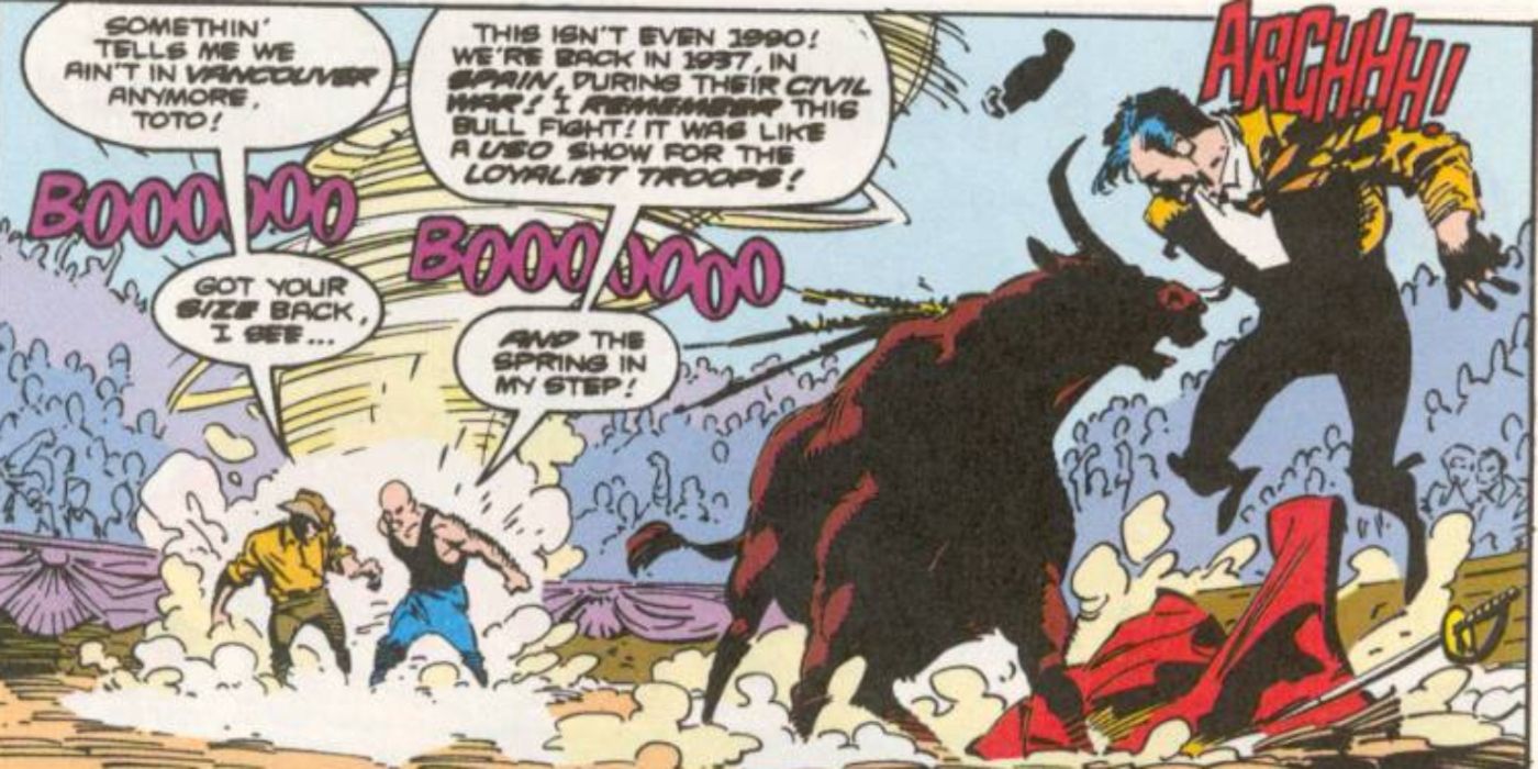 “/> A pesar de Logan estuvo vivo durante la Guerra Civil Española. (1936-1939), no luchó en él hasta la década de 1980, cuando quedó atrapado en un vórtice de desplazamiento temporal y enviado al pasado. Wolverine estaba en medio de un conflicto completamente diferente con Lady Deathstrike cuando fue literalmente arrastrado por este fenómeno temporal, solo para encontrarse en una guerra en la que logró evitar pelear la primera vez.