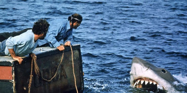 El primer éxito de taquilla del verano, Mandíbulas También fue la primera vez que Williams compuso la banda sonora de una película de Steven Spielberg. Un thriller dramático centrado en un pequeño pueblo costero de Nueva Inglaterra con un problema de tiburón asesino, Mandíbulas se ha convertido en sinónimo de la cima del cine y figura en la lista de las mejores películas jamás realizadas.