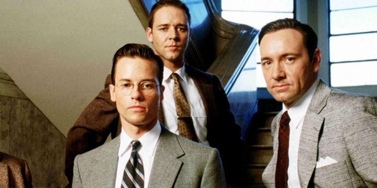 Con dos Premios de la Academia y otras siete nominaciones, el increíble elenco de la película no deja dudas sobre por qué se la tiene en tan alta estima. Pearce es Ed Exley, uno de los policías. La película también está protagonizada por Russell Crowe, Kevin Spacey y Kim Basinger, quien se llevó a casa el Oscar a la Mejor Actriz de Reparto, así como por James Cromwell y Danny DeVito.