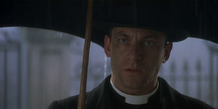 El doloroso drama romántico de Neil Jordan El final del asunto protagonizada por Ralph Fiennes y Julianne Moore como una pareja enamorada desesperada por descubrir dónde salió todo mal. Issacs interpreta al sacerdote ateo Padre Richard Smythe, de quien Sarah (Moore) busca consejo.