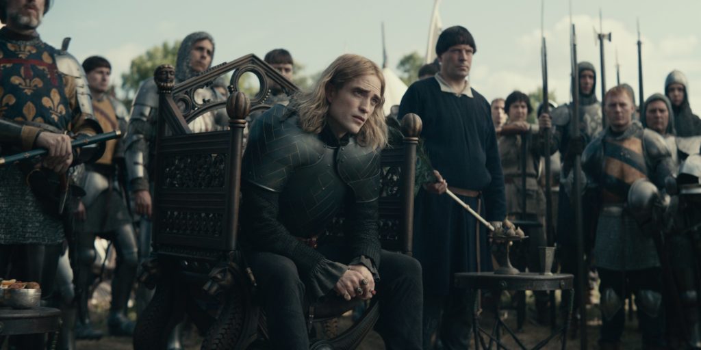 Robert Pattinson interpreta al príncipe francés, el Dauphin, y honestamente, este papel es absolutamente fascinante. Es aterrador, hilarante y un completo ladrón de escenas. Todo el elenco y el equipo deberían darse palmadas en la espalda, pero estamos obsesionados con el papel de Robert. En serio, ve a verlo.