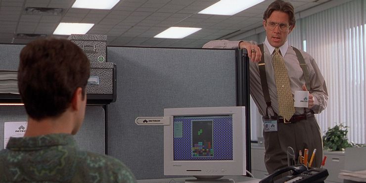 Peter Gibbons está harto de su trabajo en la oficina corporativa de Initech y ve a un hipnoterapeuta ocupacional en la comedia satírica. Espacio de oficina. La gente hasta el día de hoy todavía puede identificarse con el aburrido slug de nueve a cinco, escuchar las mismas cosas una y otra vez de jefes despistados y quedarse atrapado en el tráfico detenido en su viaje hacia y desde el trabajo.
