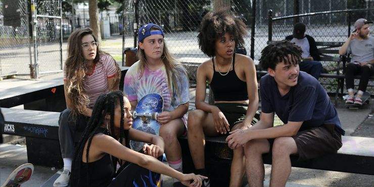 cocina skate se basa libremente en las experiencias de un grupo de skate de mujeres en la ciudad de Nueva York. La mayor parte del elenco estaba compuesto por el verdadero grupo Skate Kitchen y la directora, Crystal Moselle, pasó ocho meses pasando el rato y conociendo a las chicas antes de escribir el guión. “Skate Kitchen” es un juego de palabras después de que el grupo recibiera comentarios en YouTube diciéndoles a las chicas que “volvieran a la cocina”.