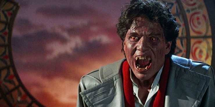 En esta comedia de terror de 1985, dirigida por Tom Holland, Noche de sustos sigue las sospechas de Charley Brewster (William Ragsdale) de que su nuevo vecino es un vampiro y solicita la ayuda de un asesino de vampiros de la televisión, Peter Vincent (Roddy McDowall).