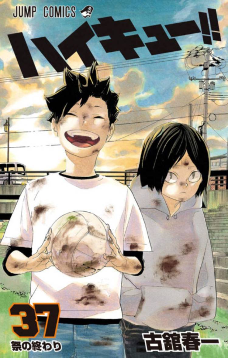 La única ilustración de portada que muestra a los personajes en sus años de infancia, la del número 37, es una tierna mirada a los líderes de Nekoma, Tetsuro Kuroo y Kenma Kozume. El joven Kuroo se ríe con una pelota en la mano mientras el tímido Kenma se encorva hacia un lado, ambos cubiertos de tierra. Su suave iluminación y colorido es tranquilo y nostálgico, ya que exudan una entrañable esencia de juventud.