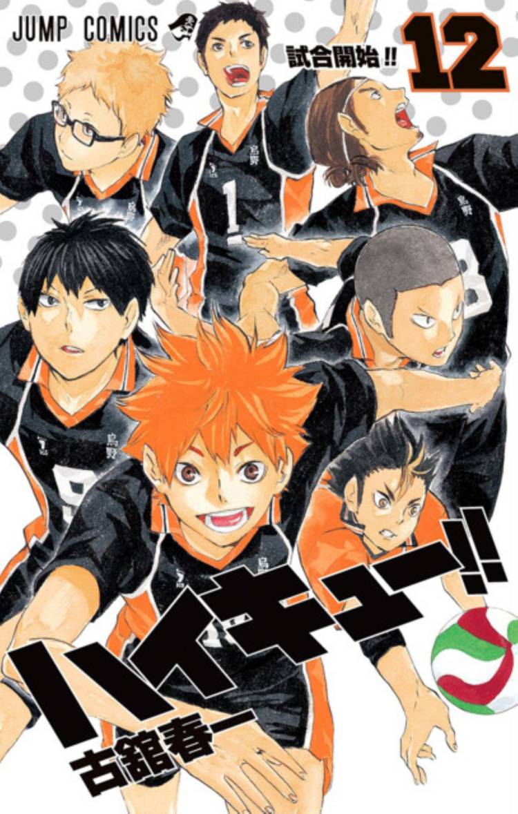 El número 12 es el primero en ilustrar a todos los jugadores titulares de Karasuno juntos. Los siete chicos están apilados uno junto al otro, todos en movimiento como si estuvieran en medio de un partido. Furudate ha dominado las poses dinámicas y el movimiento corporal que se ven en el voleibol de la vida real. Aunque Tanaka, Daichi, Tsukishima, Asahi, Kageyama, Hinata y Nishinoya visten el mismo uniforme negro y naranja, cada uno tiene una presencia con sus diseños y poses únicos.