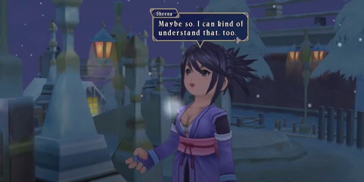 Una de las personas de este mundo paralelo y eventual miembro del grupo es el personaje favorito de los fanáticos, Sheena Fujibayashi, quien inicialmente intenta asesinar a Colette para salvar su mundo. Es una ninja habilidosa, impulsiva y de voluntad fuerte, y cree en hacer lo correcto en lugar de seguir las reglas. Si bien es indecisa, torpe y exaltada, también tiene talento y es una buena comunicadora.