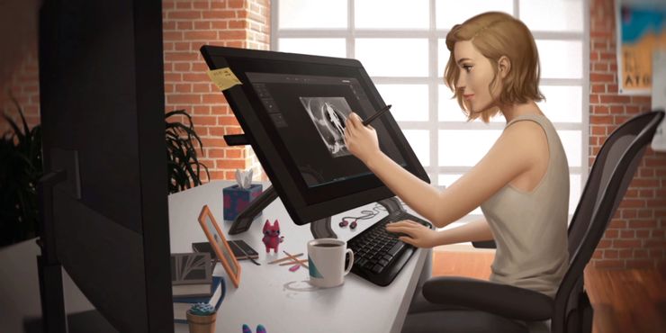 En el Injusticia universo, se revela que June Moone, la mujer poseída por Enchantress, es diseñadora gráfica. Su final después de vencer a Brainiac la muestra trabajando en una tableta gráfica, diseñando el logotipo de NetherRealm Studios.