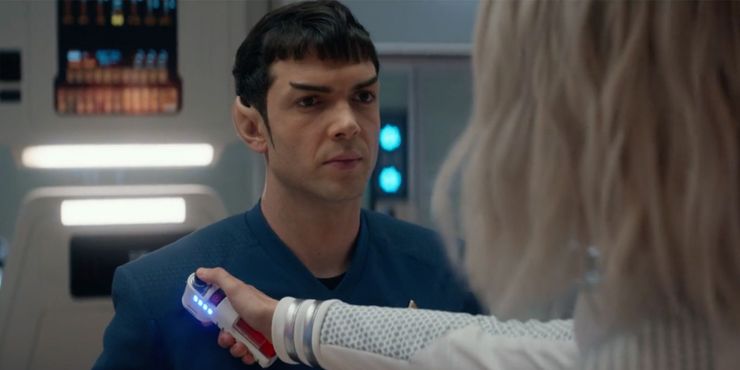 Star Trek siempre ha abordado la discriminación, ya sea en forma de metáfora o abiertamente. SNW No es diferente, en el tercer episodio “Ghosts of Illyria” se revela que el teniente comandante Una Chin-Riley es ilirio, a quien se le prohíbe unirse a la Federación debido a la ingeniería genética desenfrenada de su especie. A pesar del estigma de la Federación contra la ingeniería genética, el Capitán Pike la acepta con los brazos abiertos y le dice: “No me importa de dónde vienes. Eres la mejor primer oficial de la flota”.. “