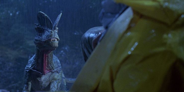 Esa es en realidad la segunda referencia de Dilophisaurus en la película. El primero termina con la muerte del dinosaurio, pero este se siente más simétrico para la serie en sí.