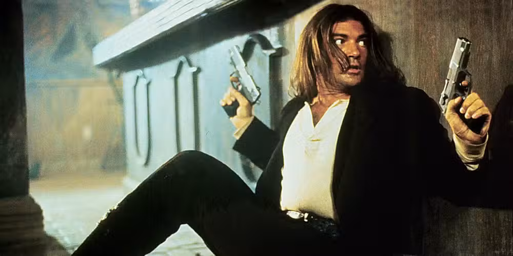 Robert Rodríguez continuó con su éxito independiente de pequeño presupuesto El Mariachi con su remake/secuela de mayor presupuesto Forajido. Esta salida también convirtió a Antonio Banderas en una estrella, eligiéndolo como el músico titular que busca venganza con un estuche de guitarra lleno de armas. Hacia el final del primer acto, el personaje de Bandaras se enfrenta a una barra de asesinos.