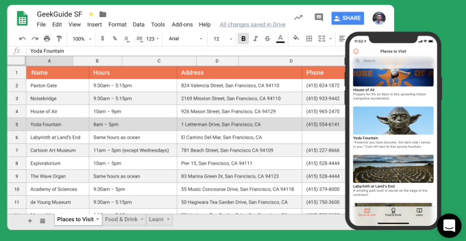 Ha habido una tendencia bastante importante hacia los servicios que facilitan la creación de páginas web o aplicaciones móviles. Glide permite a los clientes crear fácilmente aplicaciones móviles bien diseñadas desde las páginas de Google Sheets. Esto no solo facilita la creación de páginas, sino que simplifica las habilidades necesarias para mantener la información actualizada en el sitio.