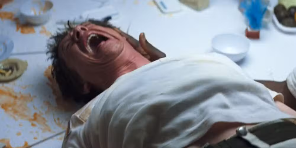Sin embargo, esa es una falsa sensación de calma. Kane comienza a convulsionar con un dolor insoportable antes una pequeña criatura alienígena sale violentamente de su pecho. Los efectos prácticos utilizados son impresionantes, la muerte cambia la historia en el futuro y es una escena que todos conocen, incluso si nunca han visto. Extranjero.