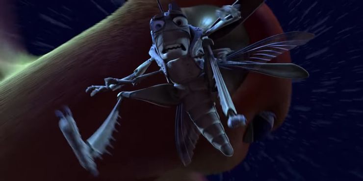 Siempre es bueno ver a un opresor hacer lo que le corresponde. Entonces, no solo la colonia de hormigas se rebela contra Hopper y su banda de saltamontes, sino que también se encuentra con su mayor temor. Flick aleja a Hopper de la colonia donde espera un pájaro cantor: para los humanos, el pájaro es lindo, pero para Hopper, es el equivalente a un kaiju.