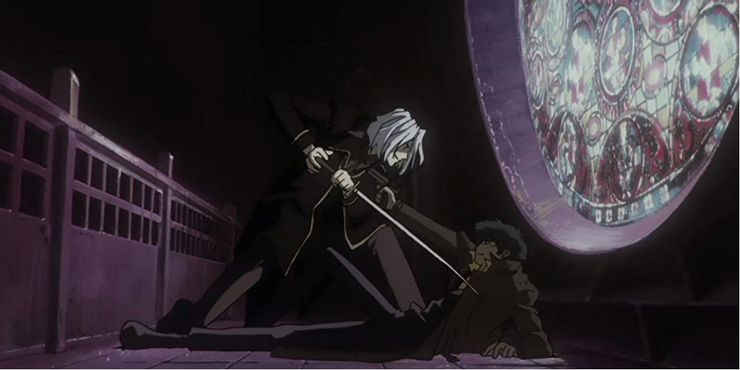 Traído a la luz por el hermoso vitral de la iglesia, la pelea alcanza un clímax visual cuando Spike es arrojado por la ventana y cae en cámara lenta mientras los pedazos del vidrio caen alrededor del protagonista que aparentemente cae y muere. . Un momento visual conmovedor que hizo que muchos se enamoraran del anime, esta secuencia es visualmente impresionante y alcanza todos los ritmos emocionales correctos.